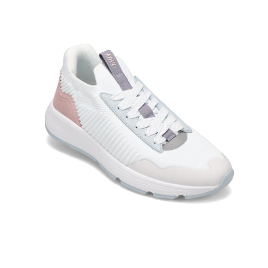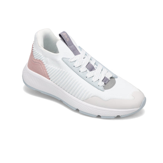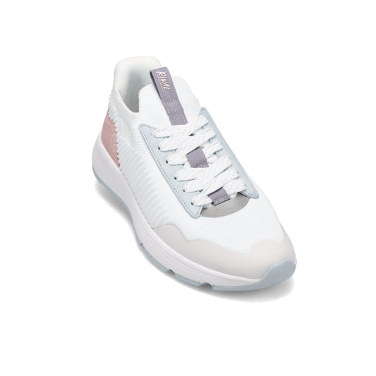 • Angled side view of RIVAL Women's Coast in White Multi/Peach/Light Blue.